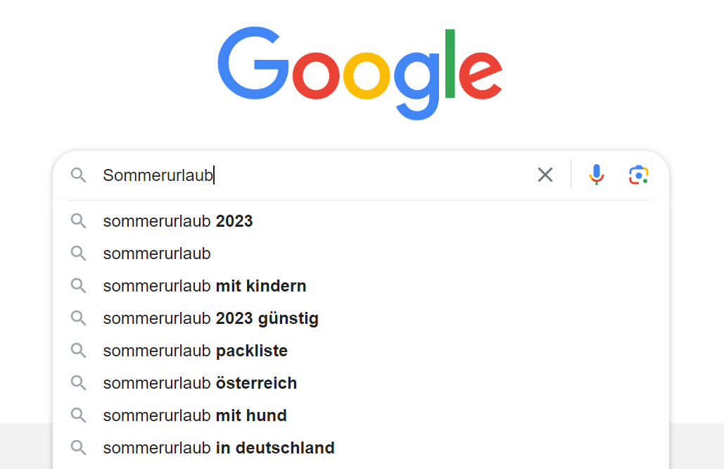 Sie sind schon auf einem guten Weg und haben den Content für Ihre Zielgruppe grob abgesteckt? Super! Nun sollten Sie die Newsletter-Inhalte für Ihre Kontakte konkretisieren. Geben Sie dafür die Begriffe, die Sie durch einen der bisherigen Tipps ausfindig gemacht haben, in die Google-Suche ein. Google Suggest ist eine AutocompleteFunktion (zur automatischen Vervollständigung), die Ihnen weitere Vorschläge passend zu Ihrem eingegebenen Keyword bietet. Google hilft hiermit nicht nur den Usern bei ihrer Suche nach Informationen über die Suchmaschine, sondern erleichtert auch Ihnen die Recherche nach passendem Content für Ihre Newsletter-Zielgruppe, nach dem derzeit auch häufig online gesucht wird.