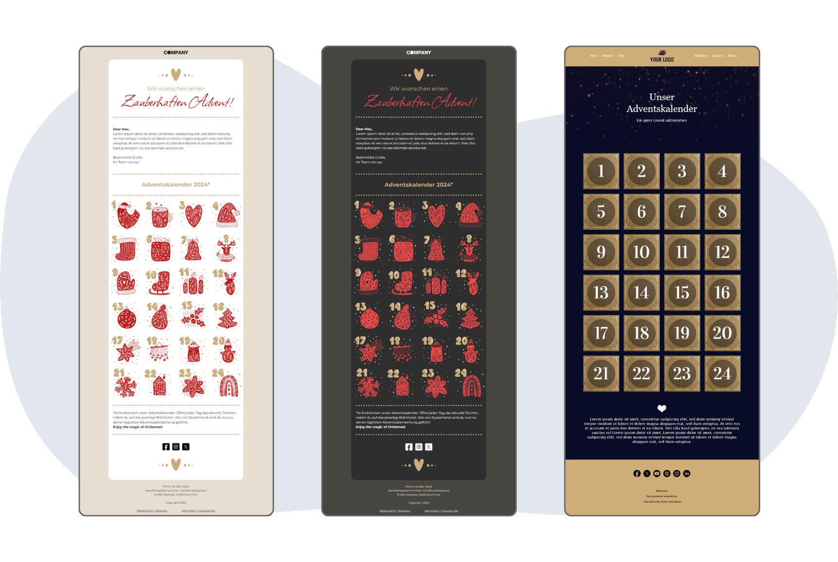 Ein Adventskalender per E-Mail ist weit mehr als eine schöne Tradition: Er lässt Ihre Kontaktliste wachsen, kurbelt Ihr Weihnachtsgeschäft an, stärkt die Kundenbindung und bringt Ihre Kontakte in festliche Stimmung.