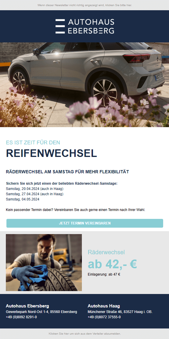 2. Vom Reifenwechsel bis zur Serviceumfrage: Die besten Anlässe für E-Mail-Marketing im Autohaus