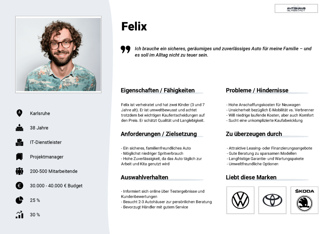 Mit unserer Persona-Vorlage zum Ausfüllen gelingt es Ihnen in Windeseile, die Buyer Personas für Ihr Autohaus oder Ihren Kfz-Betrieb zu erstellen – und Ihre Wunschkund:innen ab sofort effektiv zu überzeugen. 🚀