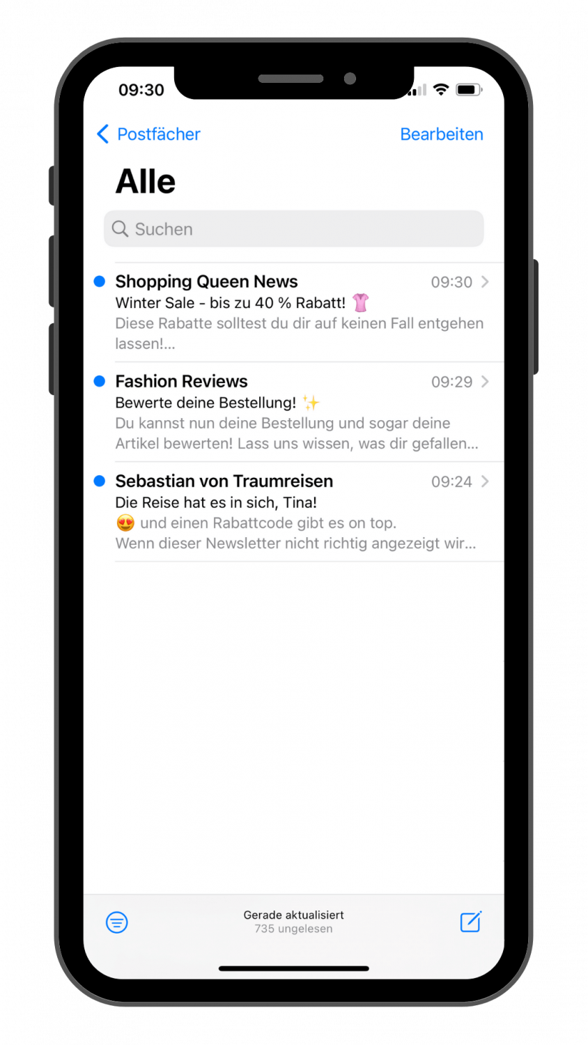 Und Ihre Empfängerinnen und Empfänger müssen nicht mal aktiv in ihre Postfächer schauen, sondern werden über Push-Benachrichtigungen automatisch aufmerksam auf neue E-Mails.