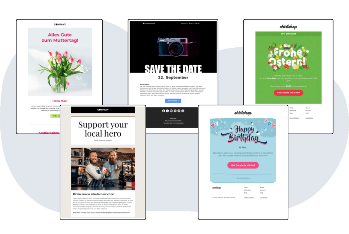 - …lassen sich automatisch Newsletter in Ihrem Unternehmensdesign erstellen: Mit unserem 1-Klick-Design können Sie ganz einfach viele unserer Newsletter-Vorlagen an Ihr Corporate Design anpassen und somit den Wiedererkennungswert Ihrer Marke noch einmal zusätzlich steigern.