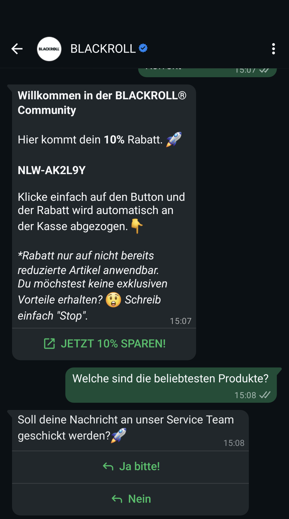 Toll! – haben sich da viele Unternehmen gedacht und sind vor einigen Jahren direkt auf den WhatsApp-Newsletter-Zug aufgesprungen. Denn nicht nur für Onlineshops war WhatsApp eine praktische Plattform, die ergänzend zum klassischen E-Mail-Marketing genutzt wurde. Neben Rabatt-Newslettern konnten zum Beispiel Kundenfragen (vgl. Bild rechts, Quelle: WhatsApp) schnell und einfach beantwortet und Versandbestätigungen übermittelt werden.