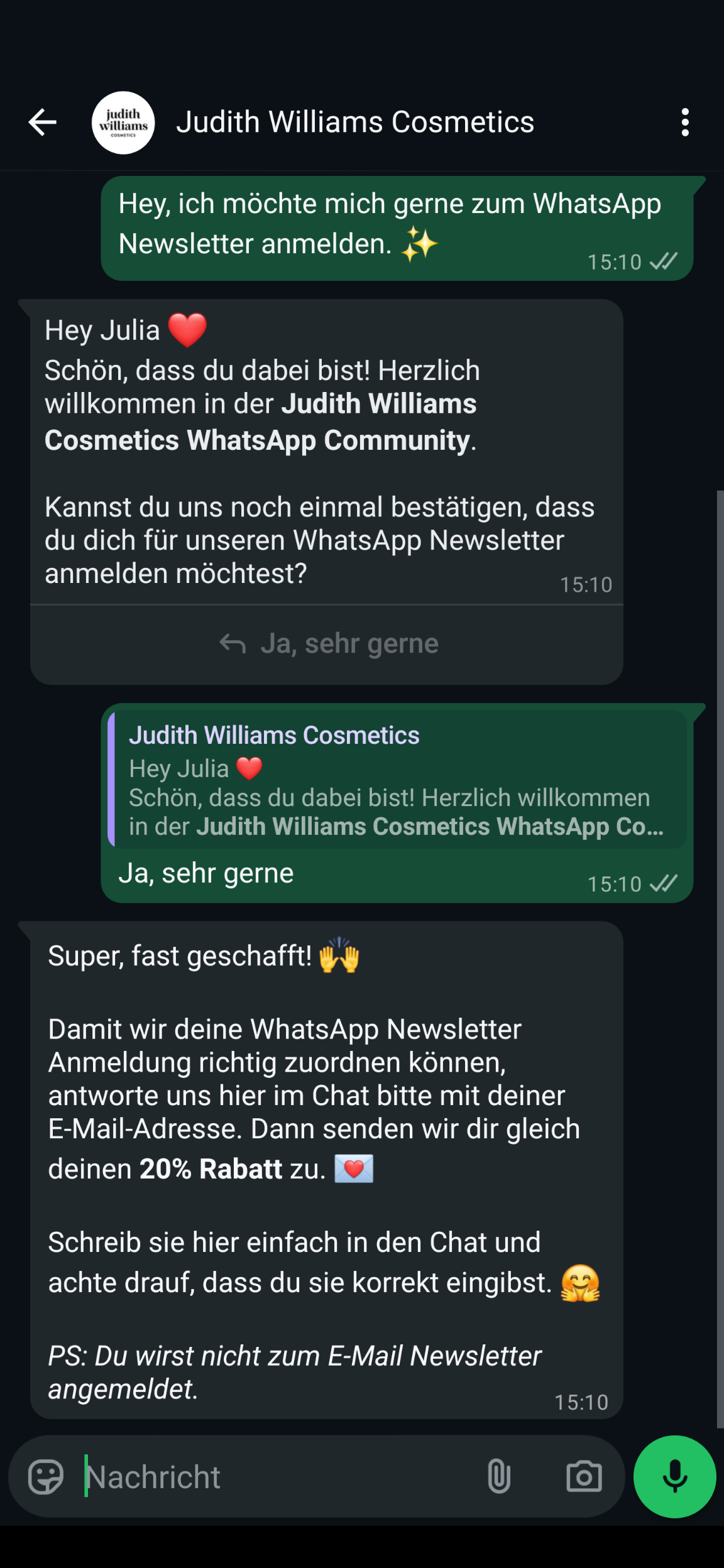 Die eingeschränkten Designmöglichkeiten und festgelegten Templatenormen führen dazu, dass es den Business-Werbenachrichten über WhatsApp wahrscheinlich an Individualität und eigenem Pep fehlen wird. Sich von den Mitbewerbern abzuheben, fällt hier um einiges schwerer als beim herkömmlichen Newsletterversand.