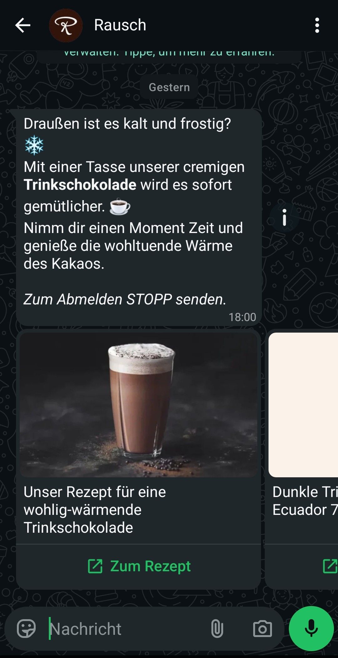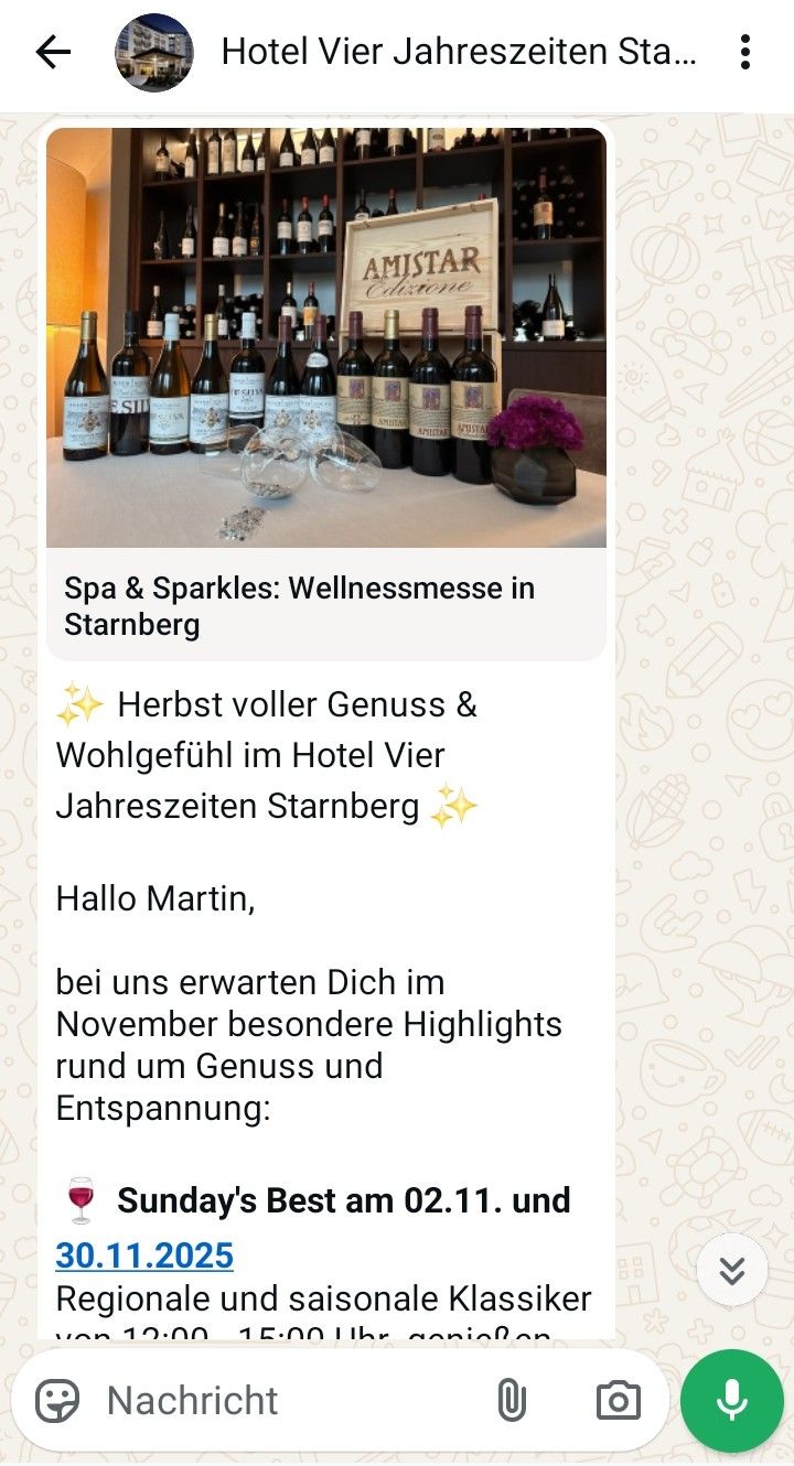 Auch in anderen Branchen lag der WhatsApp-Newsletter schon lange hoch im Kurs. So konnten beispielsweise Restaurants hungrige Arbeitnehmer:innen schon vor der Mittagspause mit einem Foto vom aktuellen Tagesgericht zu sich locken. Und kam jemand erst gar nicht aus der Pause zurück, lag das vielleicht daran, dass die Person das Last minute-Angebot aus der WhatsApp-Nachricht des Reisebüros ihres Vertrauens sehr wörtlich genommen hat. WhatsApp-Newsletter ermöglichten es Firmen, ihre Zielgruppe über Marketing-Nachrichten ans private Smartphone direkt zu erreichen – in einer der meistgenutzten Apps überhaupt.