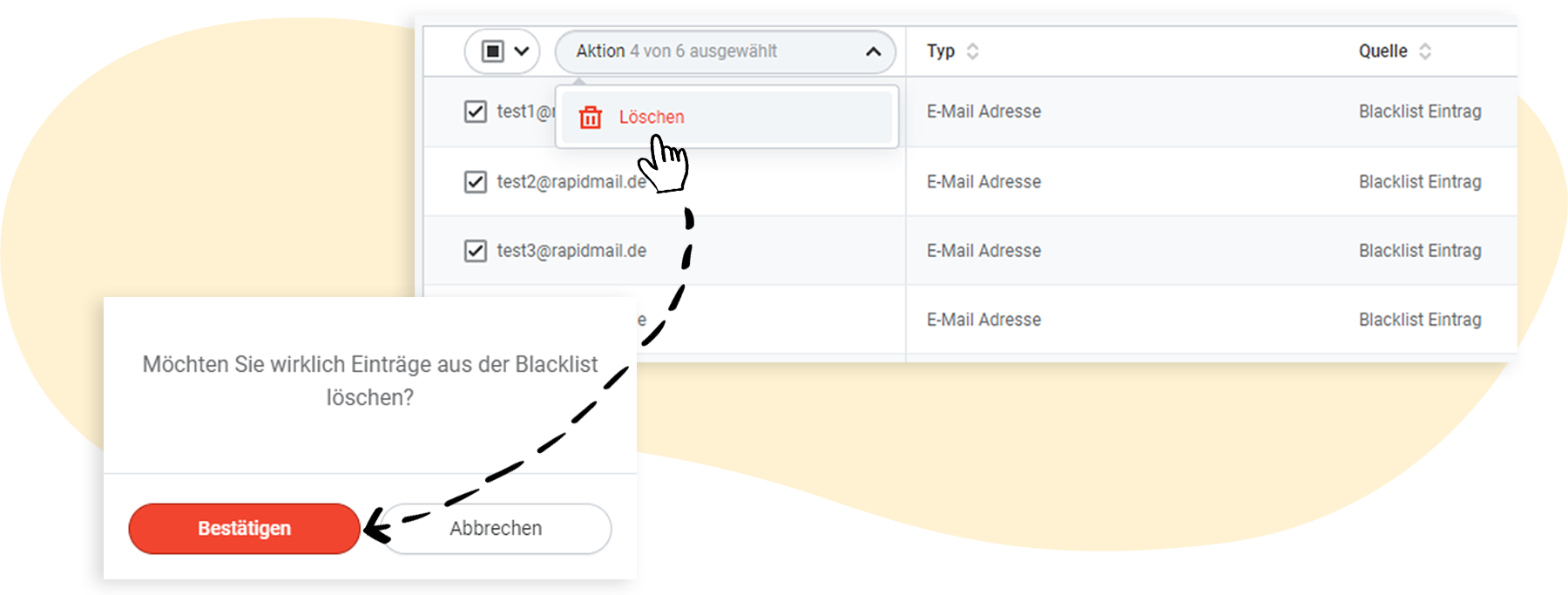 Bestätigen Sie anschließend, dass Sie wirklich Einträge aus der Blacklist löschen möchten.