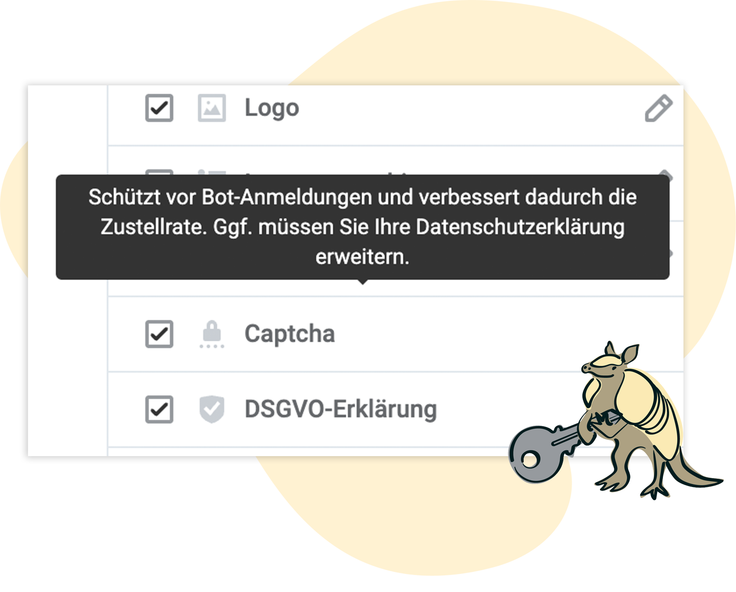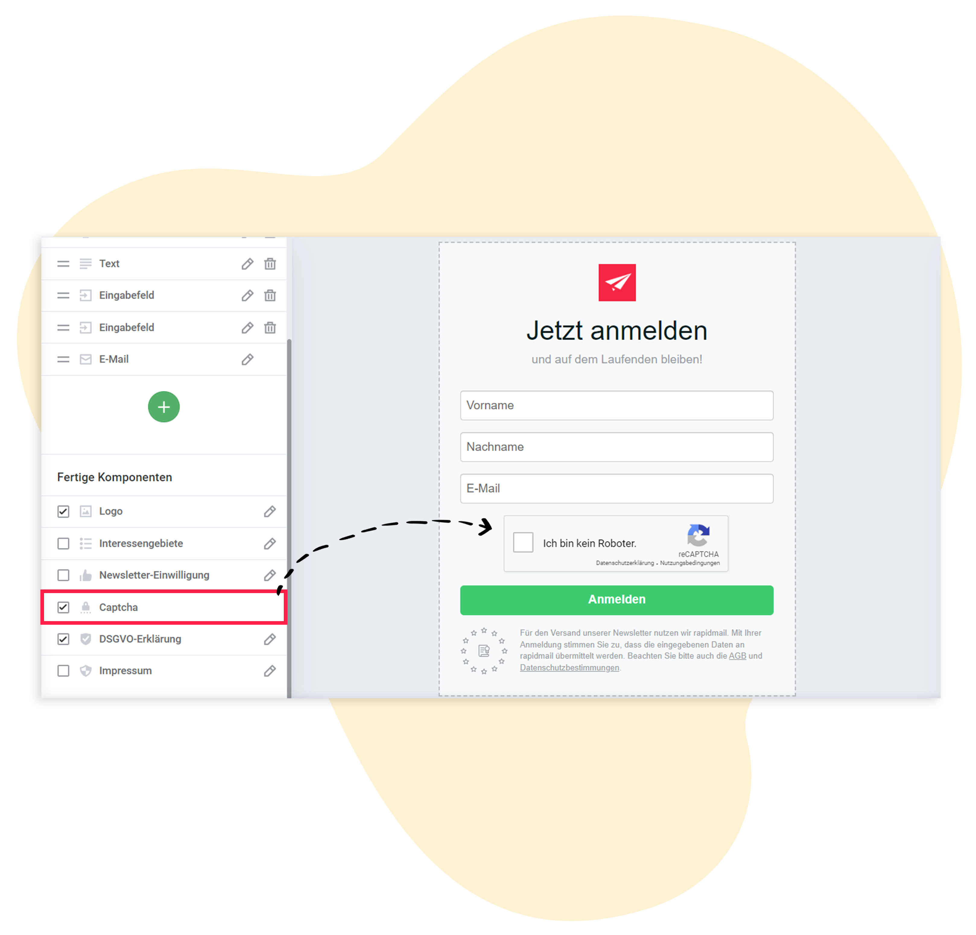Beim Google ReCaptcha handelt es sich um ein externes Modul, die Nutzung erfolgt unabhängig von rapidmail. Unser Tipp: Überprüfen Sie die Aufnahme des Google ReCaptchas in Ihre Cookie-Informationen bzw. Ihre Datenschutzerklärung. 🔐