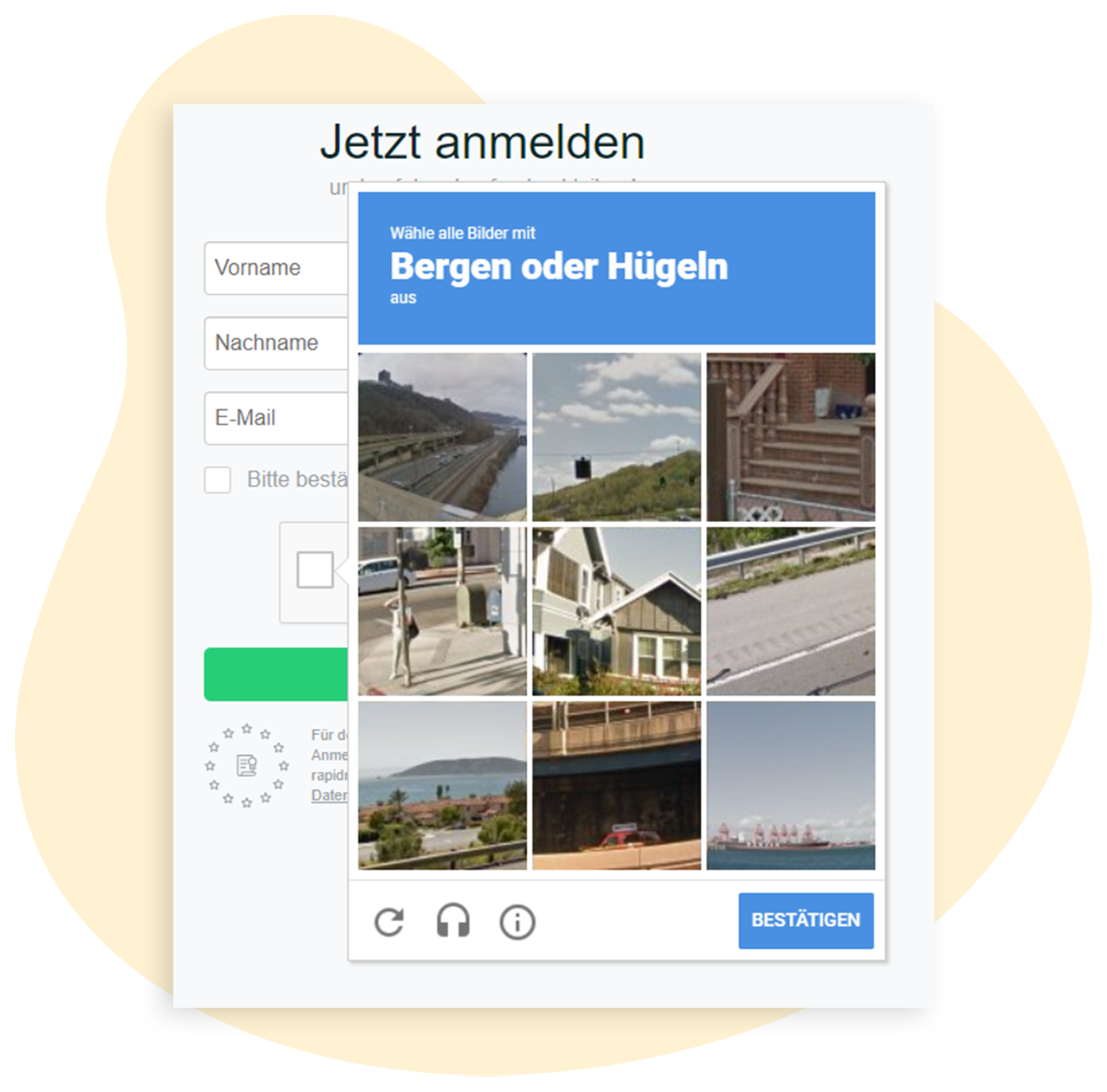 Indem Sie dem Anmeldeformular ein sogenanntes Captcha-Feld einfügen, können Sie Bot-Eintragungen vermeiden. In Zusammenarbeit mit reCAPTCHA von Google wird ein individuelles Captcha erzeugt, um zwischen realen Anmeldungen und Bots zu unterscheiden.