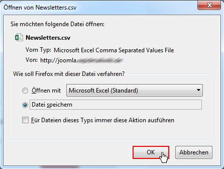 7. Wählen Sie hier Datei speichern und klicken Sie auf OK.