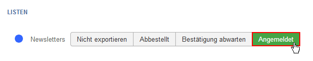 5. Klicken Sie im gleichen Fenster unter Listen auf Angemeldet.
