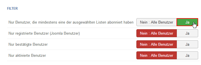 4. Klicken Sie im gleichen Fenster bei Filter wie unten aufgeführt auf Ja.