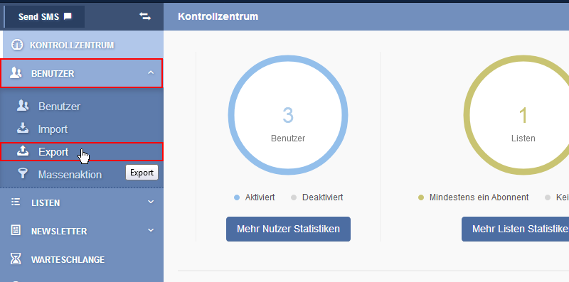 2. Klicken Sie auf der linken Seite auf Benutzer / Export.