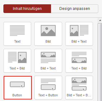 Unter Elemente finden Sie die Schaltfläche Button. Im zugehörigen Textfeld tragen Sie dann den Text ein, der im Button erscheinen soll und auf der rechten Seite unter Allgemeines die Ziel-URL.