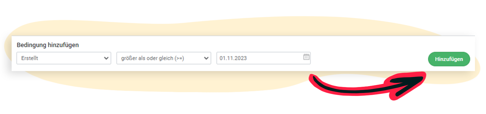 4. Unter Bedingungen verwalten können Sie nun die Bedingungen und das zutreffende Datum eintragen. So können Sie festlegen, dass nur die Kontakte in den erneuten Versand inkludiert werden, die sich am oder ab dem besagten Tag angemeldet haben (das wird durch das mittlere Feld der Bedingung gewährleistet: "größer als oder gleich"). Erfassen Sie die Einstellung dann mit einem Klick auf Hinzufügen.