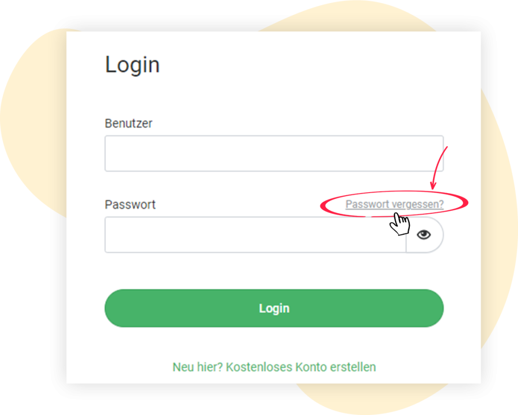 Wenn Sie sich auf unserer Login-Seite befinden, wird Ihnen über dem Textfeld Passwort die Option Passwort vergessen? angezeigt, auf die Sie klicken.