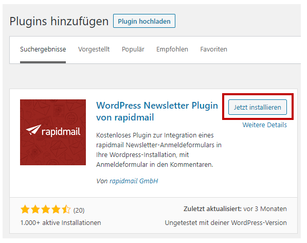 Bitte beachten Sie, dass für die Nutzung des Plugins ist ein aktiver rapidmail-Account erforderlich ist.