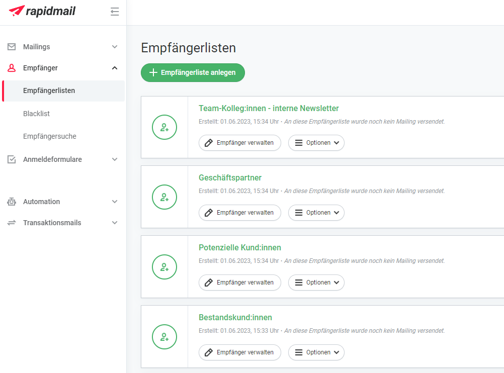 - Auf die Bedürfnisse der verschiedenen Firmenkunden eingehen und die entsprechenden Empfängerlisten übersichtlich anlegen und verwalten