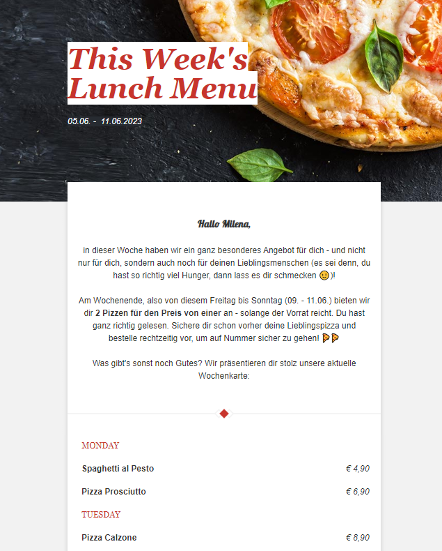 Newsletter sind ein fester Bestandteil des E-Mail-Marketings. Sie können zu den verschiedensten Zwecken versendet werden: Ein Pizzalieferservice kann zum Beispiel die Deals der Woche oder die neuen Gerichte auf der Speisekarte per Newsletter bewerben, Kaufhäuser können zum verkaufsoffenen Sonntag einladen oder den großen Sommer-Sale verkünden, und auch firmeninterne Newsletter sind sehr beliebt, um alle Kolleg:innen regelmäßig auf dem Laufenden zu halten und den Flurfunk zu revolutionieren.
