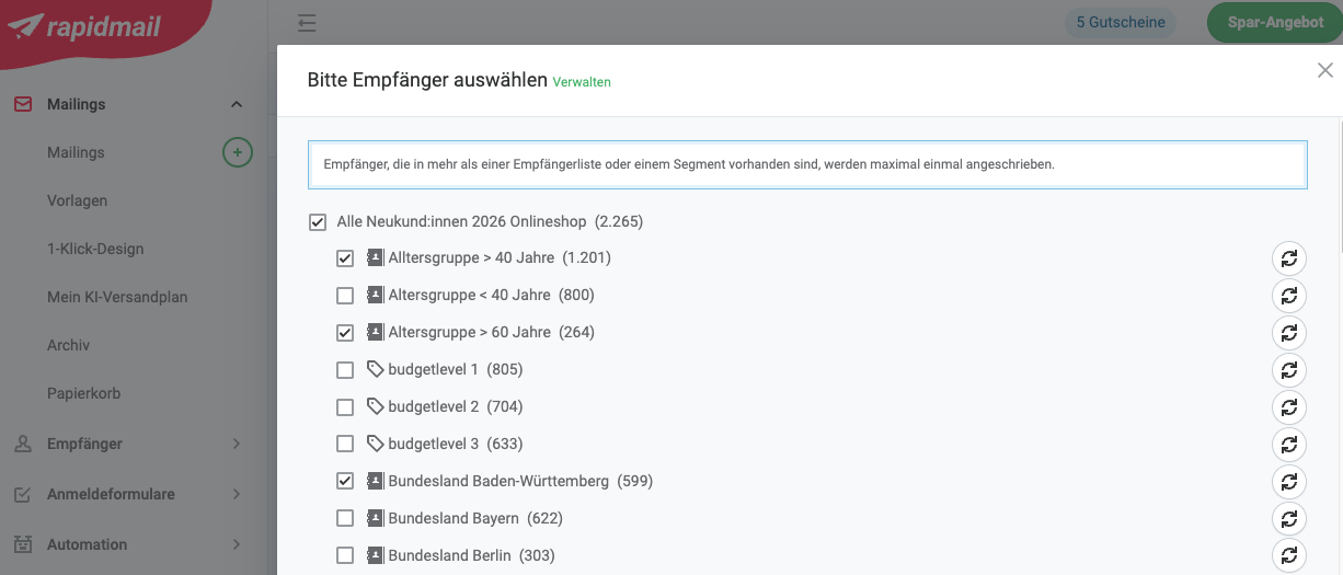 - ✅ Ist die richtige Empfängerliste ausgewählt?