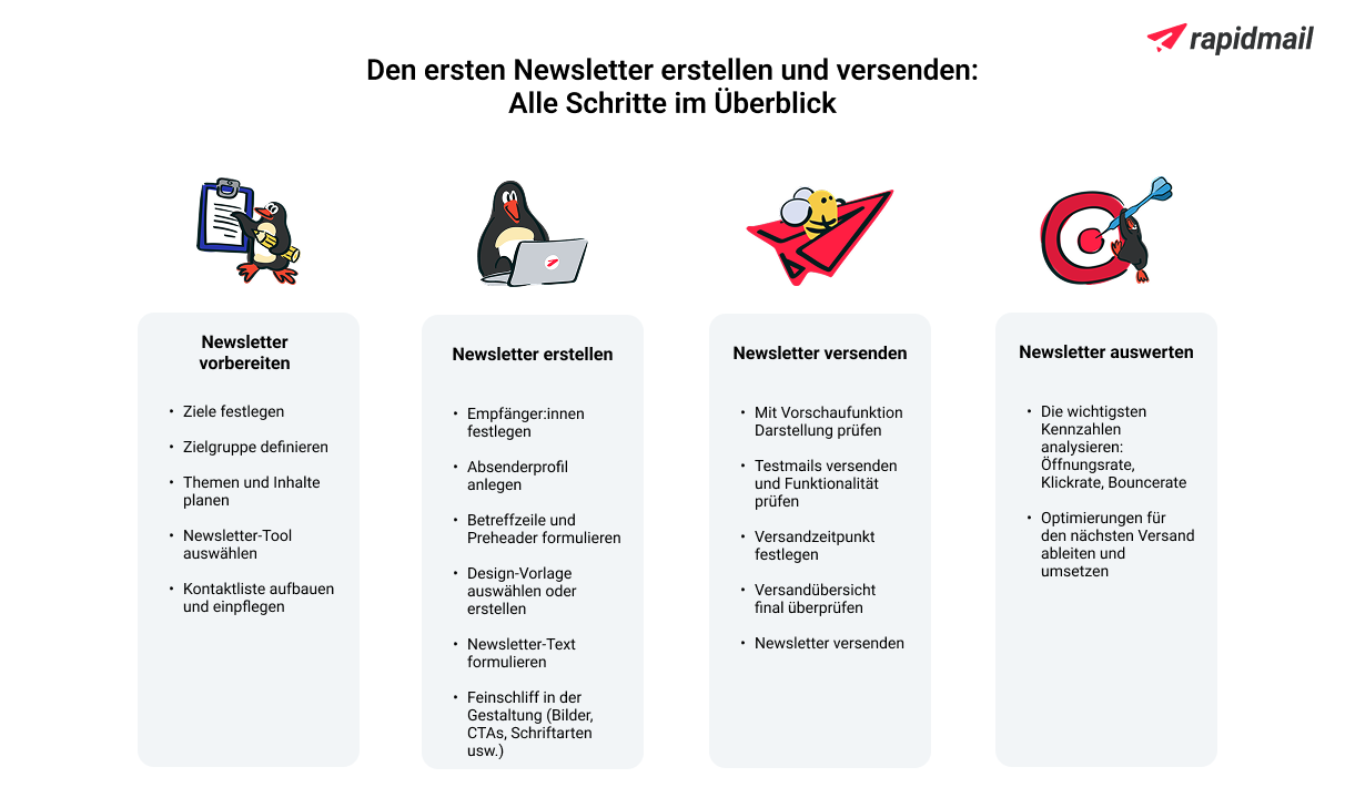 Die wichtigsten Schritte zur Newsletter-Erstellung im Überblick: