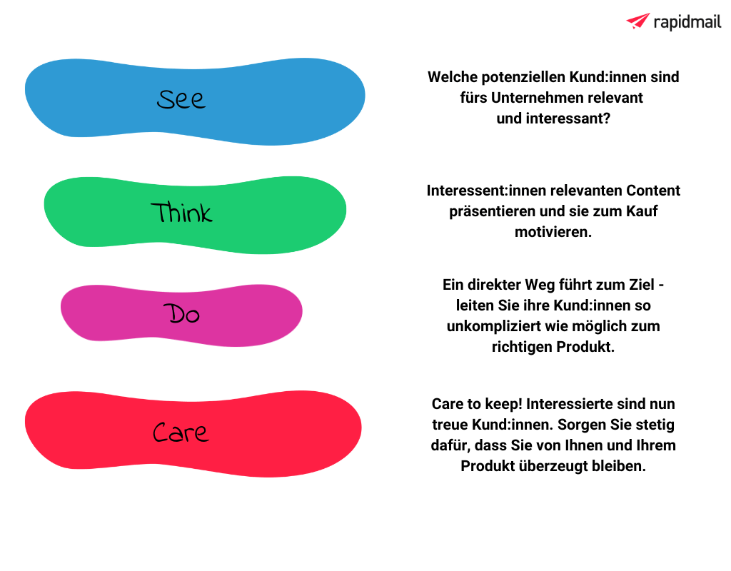 Mit dem sogenannten STDC-Modell können Sie die Customer Journey Ihrer Kund:innen optimieren und sie so im Idealfall langfristig an Ihr Unternehmen binden. So können die Phasen des Inbound-Marketing auch als Funnel interpretiert werden, der die Kund:innen Schritt für Schritt zum Produkt führt.